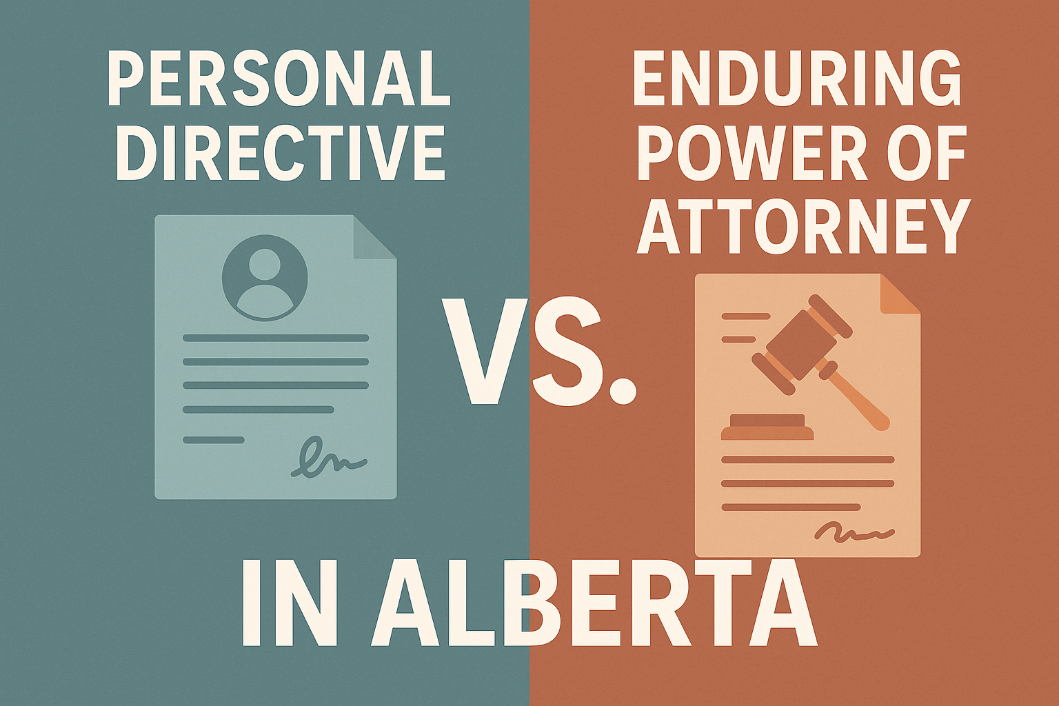 In short, a Personal Directive speaks to how you want to live, while an Enduring Power of Attorney governs how your finances are managed if you cannot act for yourself.